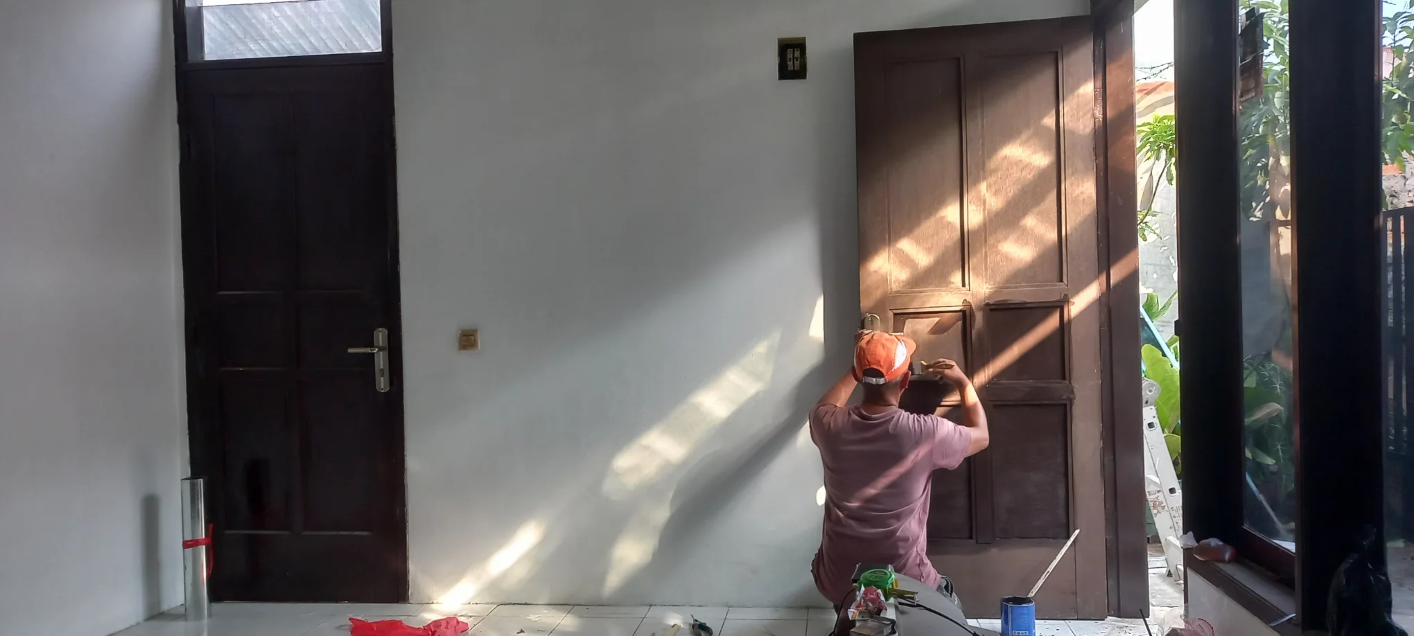 Terletak di daerah Pagarsih Bandung, pengerjaan pengecatan area rumah.